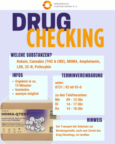Achtung! Der Besitz von illegalen Substanzen bleibt auch beim Drugchecking illegal!